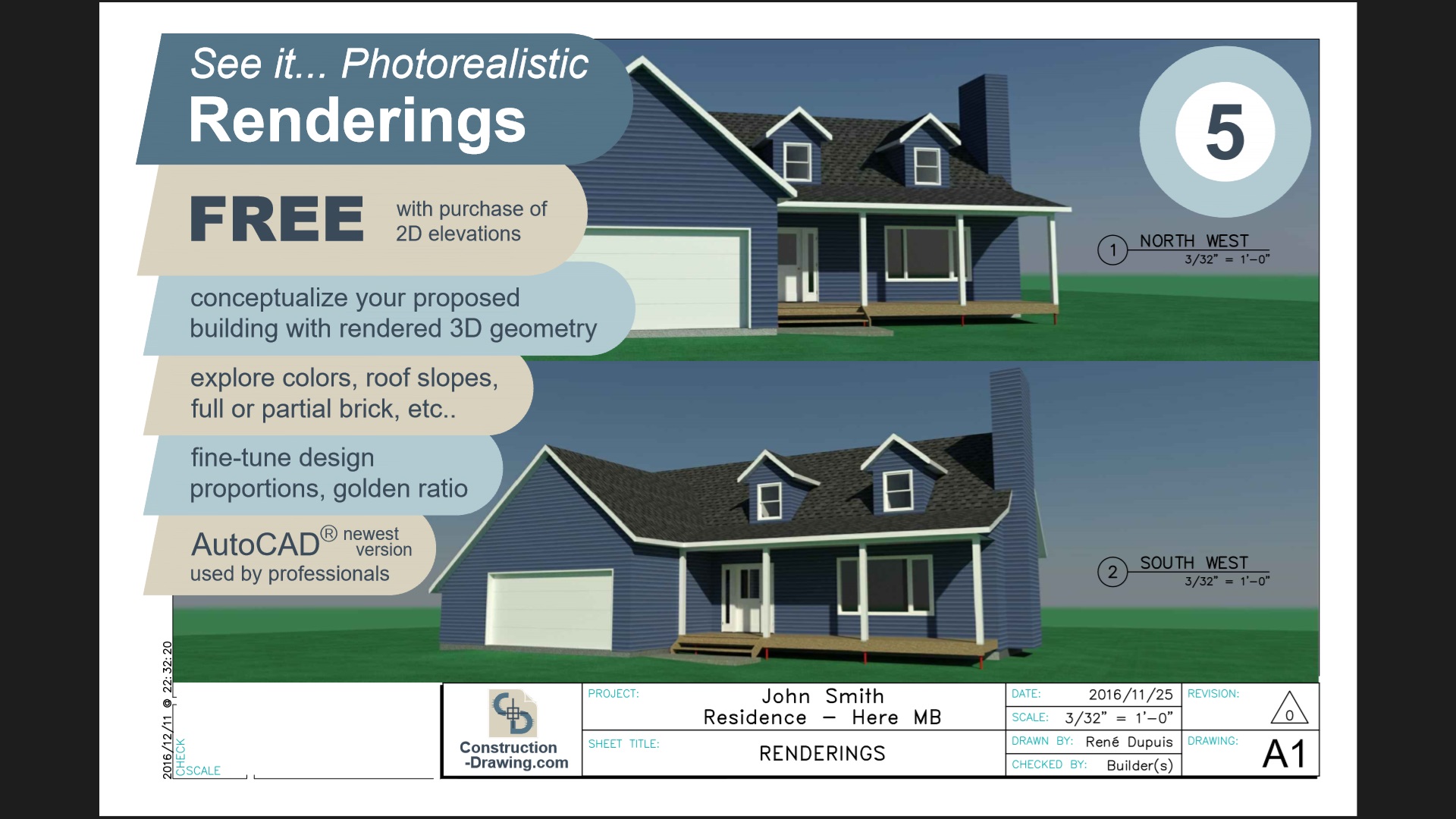 “I have enjoyed working with Rene for a few years now and appreciate his quick turnaround time . As a Structural Engineering Technologist Rene brings a good understanding of standard building practices and a keen eye for detail. I find the solid 3D renditions of the proposed builds interacting with the residential structures we typically work on an invaluable asset in the sales arena . I would recommend his services to any general contractor.”